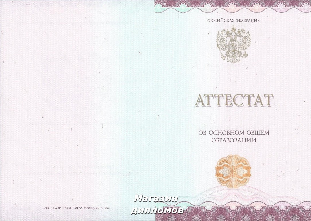 Аттестат Российской Федерации за 9 классов, выдавался с 2014 года.